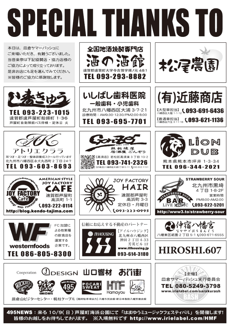 皿倉サマーバッシュ、無事、開催終了致しました。 関係者の皆様、ご来場くださった皆様、有難うございました。 | ||||||||||||||||||||||||||